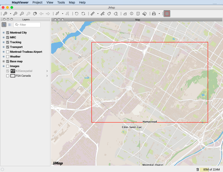 You can also delimit the initial view of the project, when it is opened in JMap Pro applications. Click on