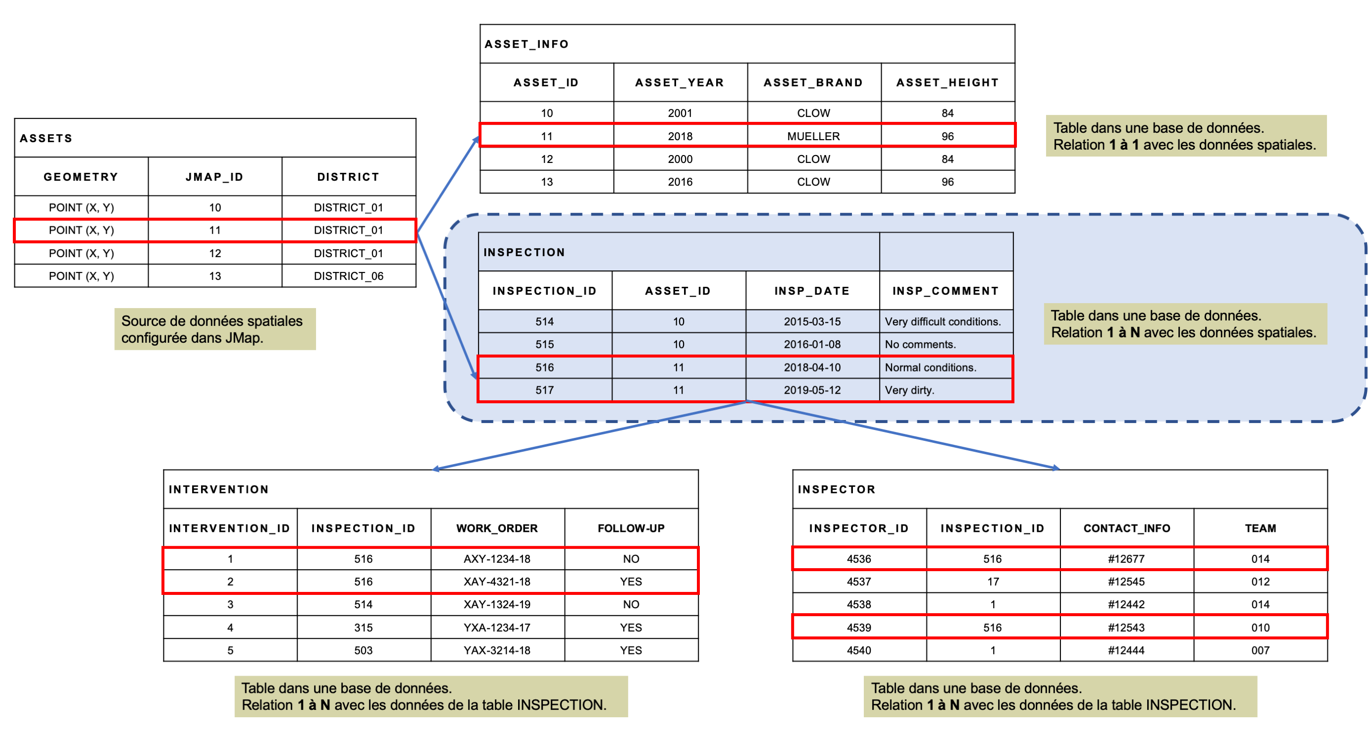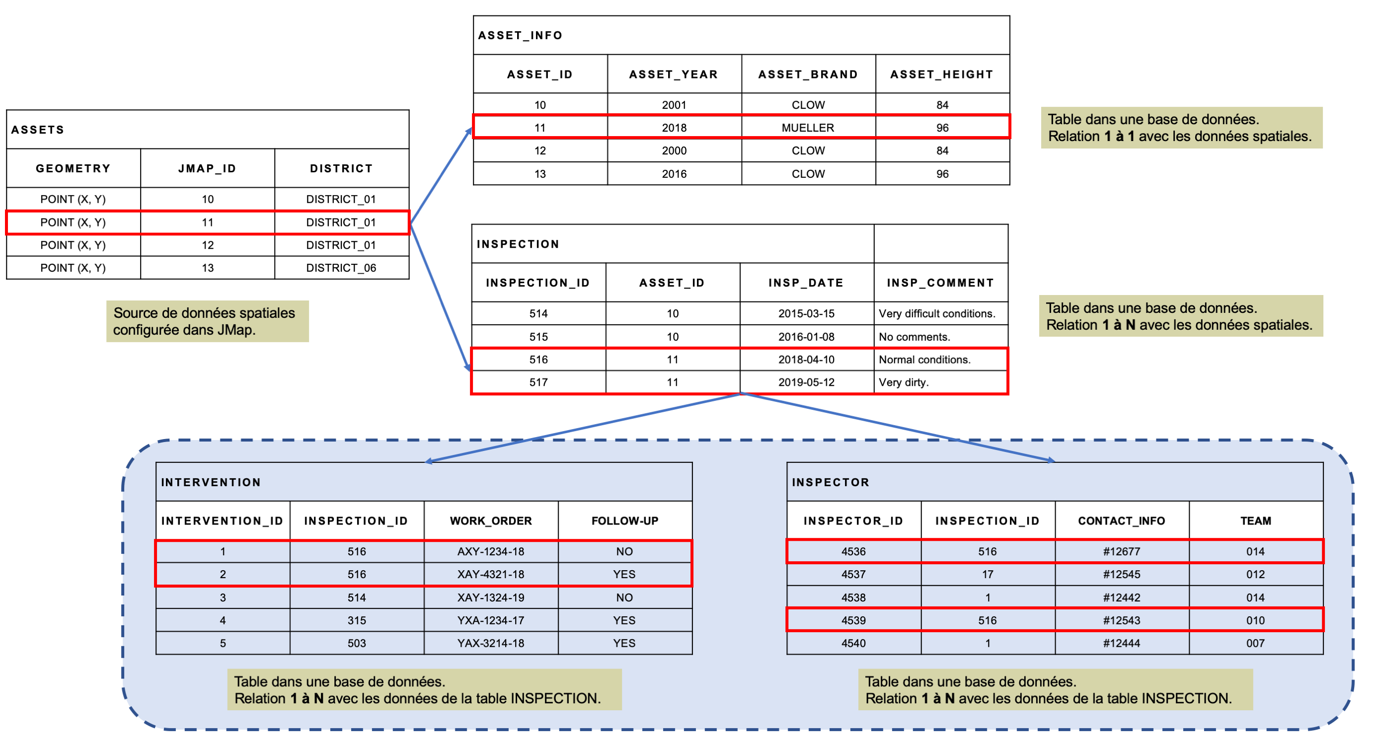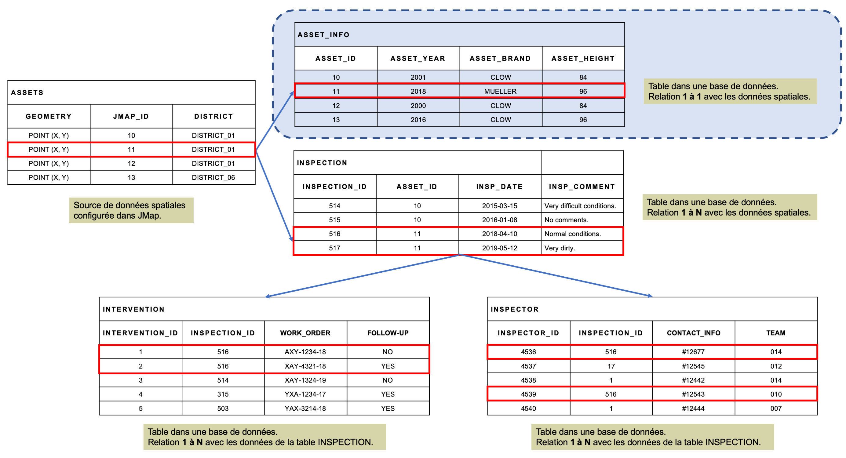 <figure><img src="https://content.gitbook.com/content/DUF1p2rT0hfE3QBlbbvE/blobs/Dx9AzGKF9k1eQNcx9JYr/Formulaires_BD.jpg" alt=""><figcaption><p><em>Database forms use a common field to manage data external to JMap that is related to the layer.</em></p></figcaption></figure>