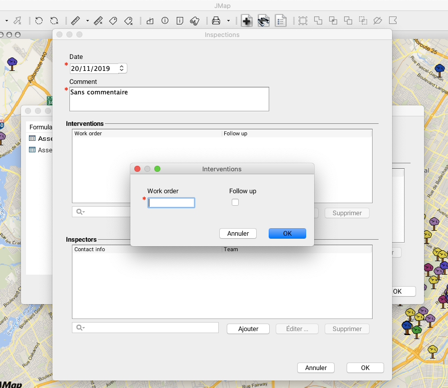 Several levels of subforms can be nested in a subform. They are used to manage data having a 1 to N relationship with the subform’s records. For example, they can be used to manage the data of interventions arising from an inspection performed on an asset (N interventions can be associated with 1 inspection).&#x20;