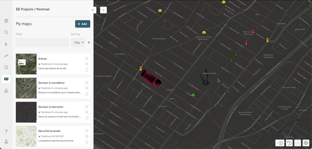 The panel named My maps lists all the customized maps. It also contains the tools to create new ones and share them.
