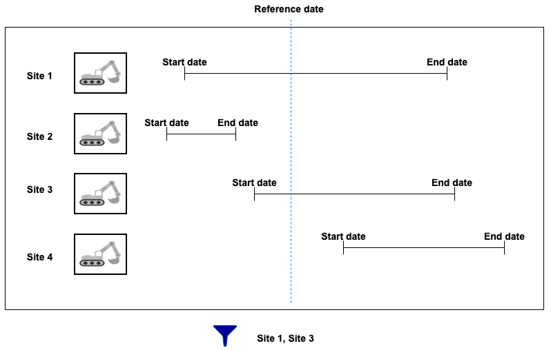 Only layer elements whose reference date is between the start and end date are displayed in the map.