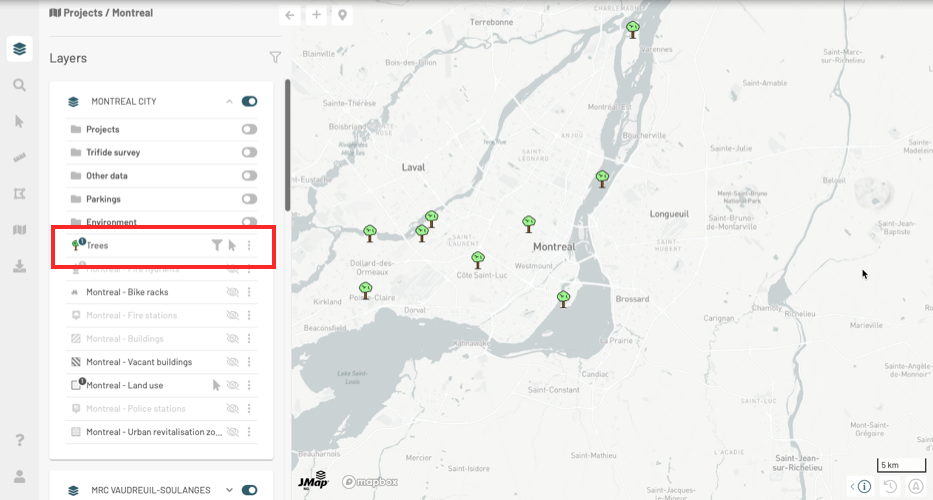 displayed in the layer card indicates that this one has an active filter. Configured filters are enabled by default.