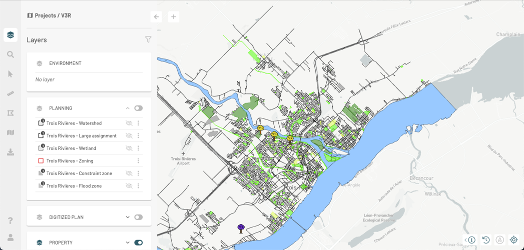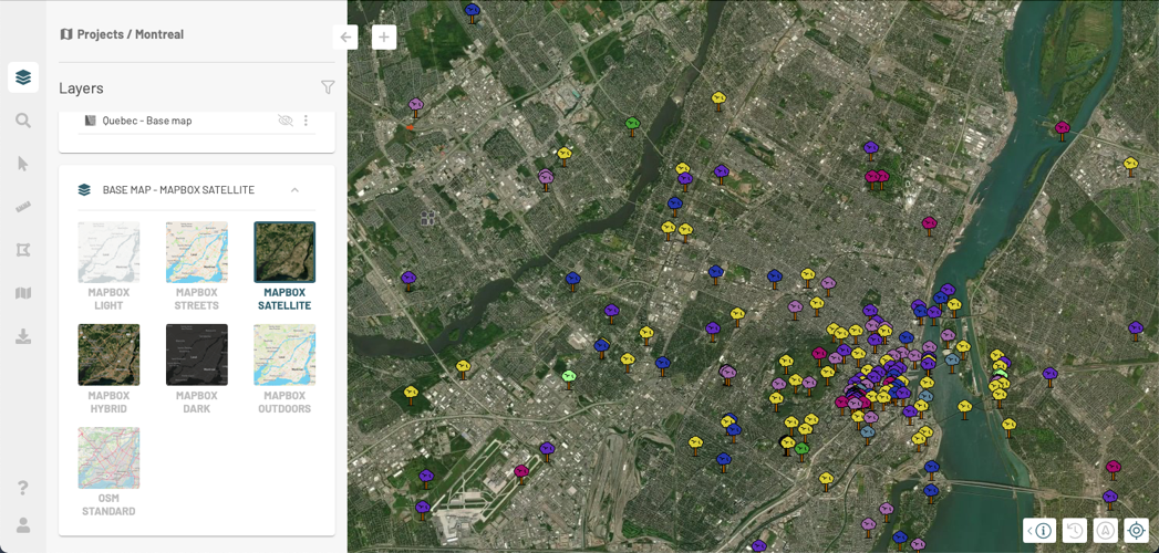 to close the group of layers card.Pass the mouse over a layer to display the available tools. The Data Layers section offers details on these tools.