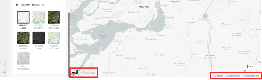Select a base map from the BASE MAP group. The name of the selected map is displayed with the name of the group.