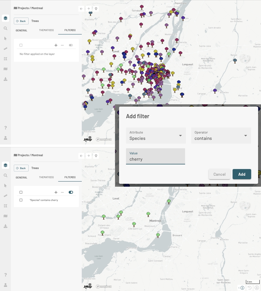 Press Add. Only items in the layer that pass the filter are displayed on the map.