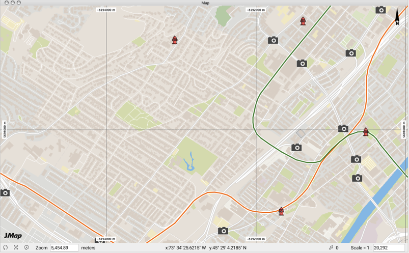 Static map elements are objects that are placed on fixed areas of the map. Two types of static elements are available: the north arrow and graphic scale.