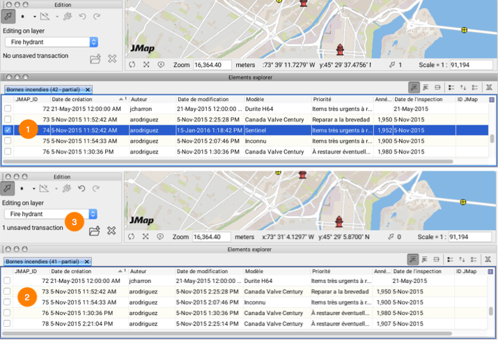 9. Save the transactions made in the extension **Edition** window. The number of transactions is equal to the number of modifications made (edition, addition or deletion) times the number of elements of the layer selected.
