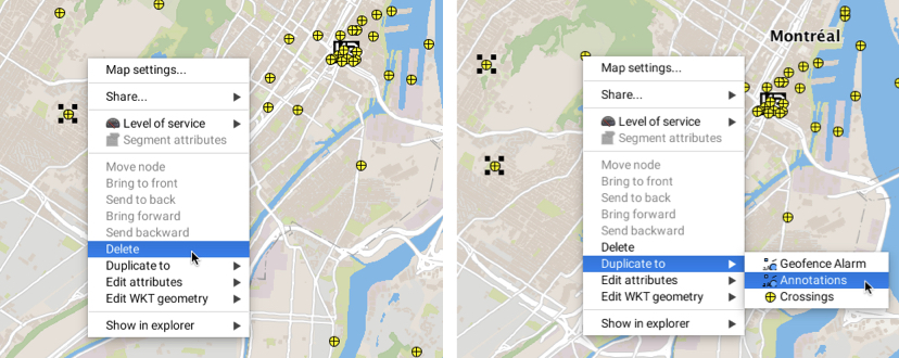 The elements are added in the **Annotations** layer. They can be saved in a context, where they can be selected and duplicated in other editable layers using the pop-up menu. This menu also allows you to delete elements and modify their vertical position.