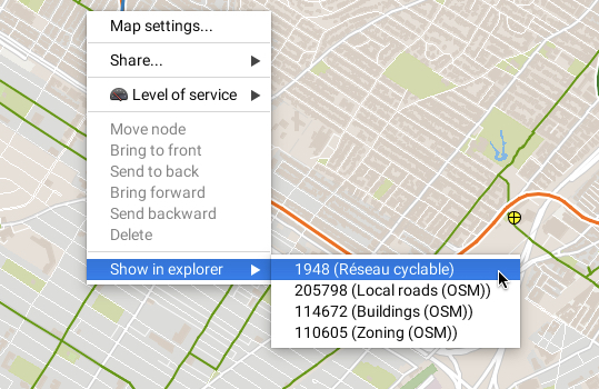 It can also be opened by right-clicking on a map element and selecting **Show in explorer**.&#x20;