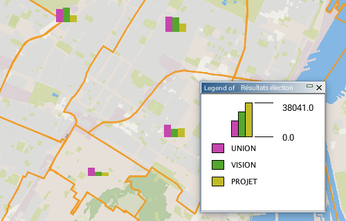 Thematic maps allow you to illustrate information pertaining to a particular theme. For example, a thematic map on criminality could illustrate the various sectors of a city in different colors based on the crime rate in each of these. A thematic map could also illustrate the results of an election by representing a breakdown of the votes for each party in a pie chart.