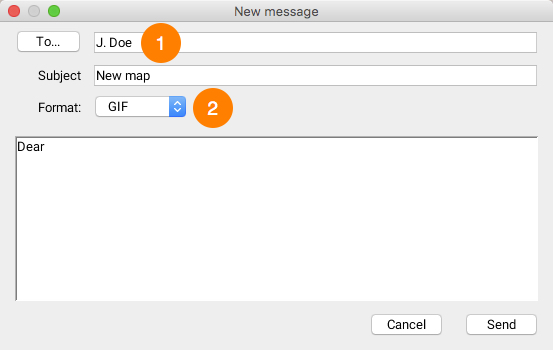 Choose the email recipient among all JMap users by clicking on the To... button or enter the address of the recipient. Enter a subject for your email.