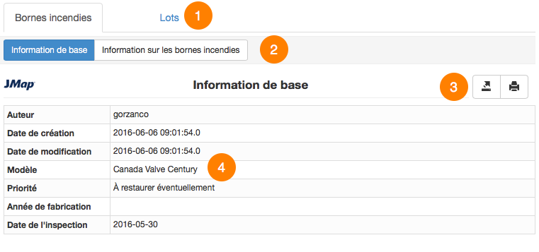 Reports display descriptive data pertaining to the pointed elements. They are defined by the JMap administrator.