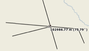 Most of the tools for drawing map objects (measurement tools, selection tools, editing tools, etc.) can be used with the snap function, which snaps the pointer to existing elements. This is useful to measure the exact distance between two elements, for example.