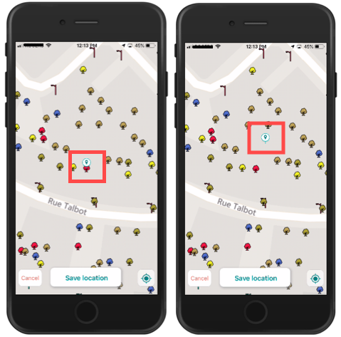 Touch the map to indicate its new location; a marker will indicate the chosen location. You can also touch