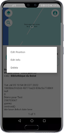 Touch Delete to delete the object. JMap Survey asks you to validate your choice. The selected object is deleted.