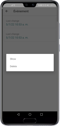 Touch an item in the list. Two options appear: Show and Delete.