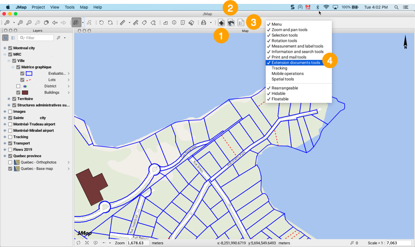 The Documents toolbar can be displayed or hidden using the pop-up menu of the JMap Pro toolbar.