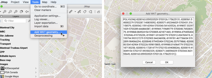 The JMap Pro user can add and edit WKT geometries.