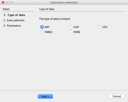 The graphical interface of the Importation extension, which can be accessed by going to Tools -> Import data in the Pro application, guides the user through the steps of the importation process.