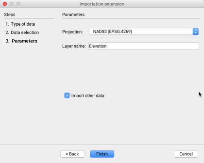 Data will be imported into a layer whose name must be specified. By default, the name is derived from the names of the data sets to import.