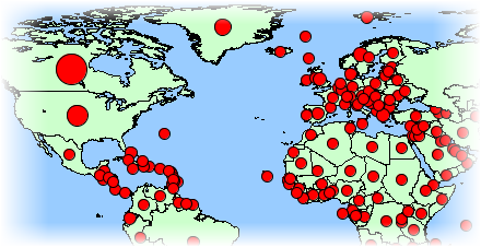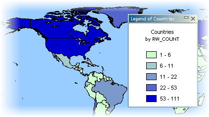 Les thématiques de symboles gradués affichent des symboles superposés sur les éléments qu’elles qualifient. Les tailles des symboles varient en fonction d’un nombre fini de catégories basé sur un attribut numérique. Les symboles peuvent être utilisés avec tout type d’élément de carte. Seuls les attributs numériques peuvent être utilisés pour ce type de thématique.
