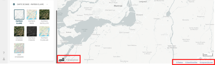 Les sources de données de la carte de base s'affichent dans la partie inférieure de la carte.
