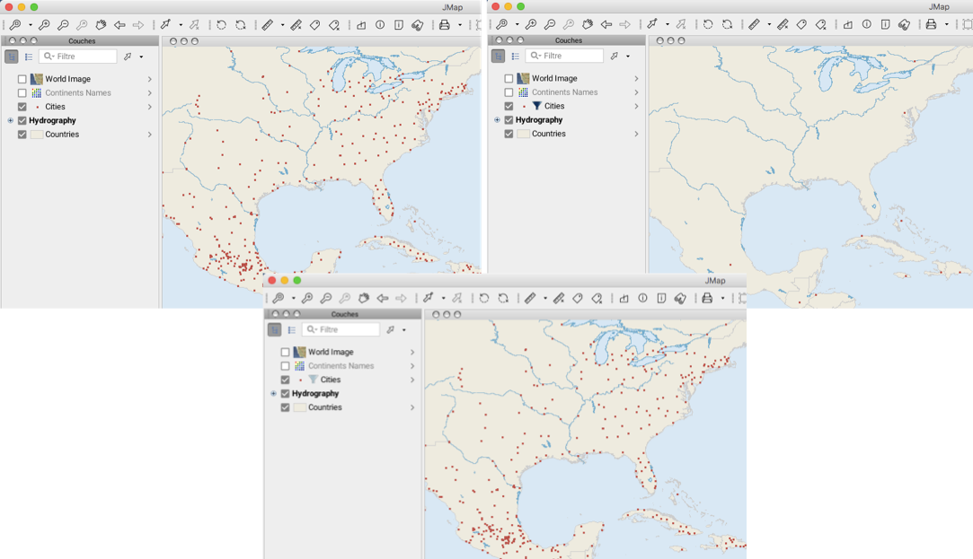 L'icône ![img](https://294136567-files.gitbook.io/~/files/v0/b/gitbook-x-prod.appspot.com/o/spaces%2FdAw9YBQHVS9E90BSZYQK%2Fuploads%2Fgit-blob-9c40dc707b0c85b3c283c9d65a88f88d3e23131d%2Ffiltre.png?alt=media) adjacent au nom de la couche indique qu'un filtre est activé. Le filtre peut être désactivé en décochant la case correspondante. Dans ce cas là tous les éléments de la couche s'affichent et l'icône ![img](https://294136567-files.gitbook.io/~/files/v0/b/gitbook-x-prod.appspot.com/o/spaces%2FdAw9YBQHVS9E90BSZYQK%2Fuploads%2Fgit-blob-175cb3ebd15989b5e7eefc23d929bfc4ab094ddb%2Ffiltre_inactif.png?alt=media) indique qu'un filtre est configuré pour la couche.