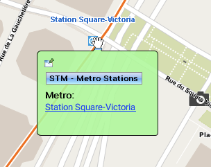 Les infobulles contiennent de l'information sur les éléments de la carte. Elles sont affichées automatiquement lorsque le pointeur de la souris reste immobile au-dessus des éléments de certaines couches. Les infobulles peuvent contenir des valeurs d'attributs, des liens vers des pages web, des images, etc. Lorsque plusieurs éléments son superposés, les infobulles affichent l'information pour tous les éléments en les regroupant par couche.