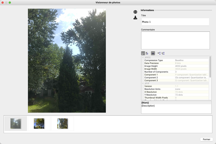 Les photos disponibles pour l'élément s'affichent dans le visionneur. Cliquez sur la photo de votre choix pour l'afficher avec ses informations.