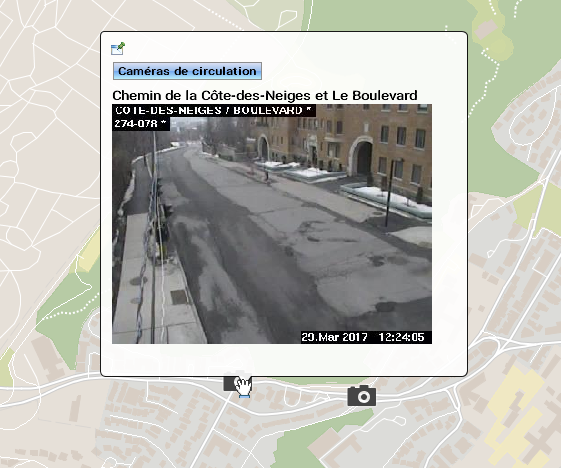 Les infobulles peuvent afficher du contenu HTML, des images comme dans la figure suivante ou encore des photos 360 degrés. Lorsque l'infobulle contient des nombreuses photos ou des photos de grande taille (comme les photos 360 degrés) il peut avoir un certain retard dans son affichage.