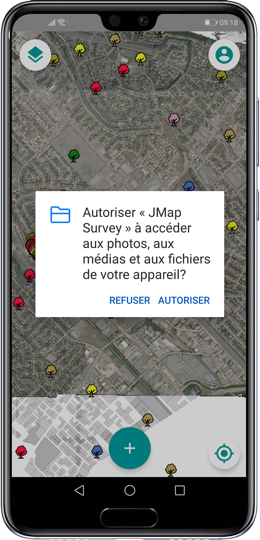 3. Autorisez les fonctions de géolocalisation et l'accès aux photos, caméra et fichiers de votre appareil. Votre réponse est mémorisée.