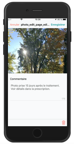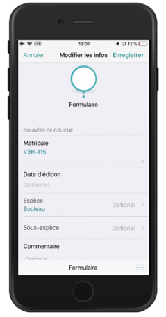 4. Touchez **Enregistrer** pour sauvegarder les changements, **Annuler** pour supprimer les modifications ou <img src="https://294136567-files.gitbook.io/~/files/v0/b/gitbook-x-prod.appspot.com/o/spaces%2FdAw9YBQHVS9E90BSZYQK%2Fuploads%2Fgit-blob-d6ffffa320be26b1ee67b6362cbdb936ae00ffb9%2Fsurvey-clip_48.png?alt=media" alt="" data-size="line"> pour effacer la photo.