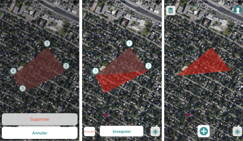2. Touchez **Supprimer** pour effacer le vertex. La forme qui adoptera l'objet avec le déplacement s'affiche en transparence sur la carte.