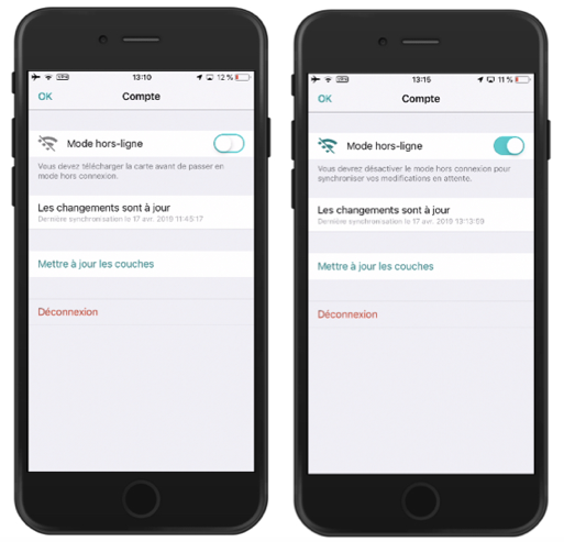 Vous devez télécharger la carte à chaque fois que vous allez travailler en mode déconnecté pour qu'elle soit à jour, suite à la dernière synchronisation.