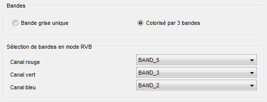 Cette option sera accessible seulement pour une image à plusieurs bandes, sinon l'option Bande grise unique est cochée par défaut.
