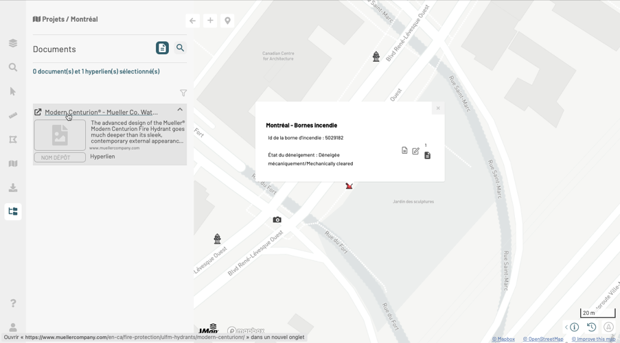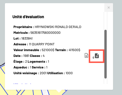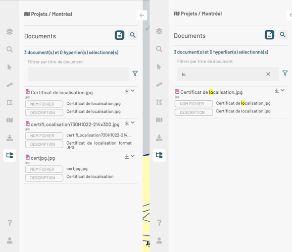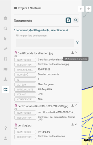 Pour accéder à la liste des documents associés à un élément ou objet de la carte :