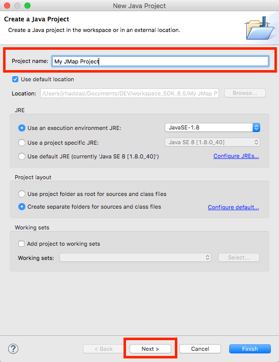 In an Eclipse worskpace (existing or new), create a Java project for the JMap 7 SDK.