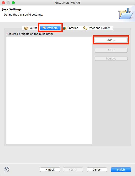 Select the Projects tab and press Add.