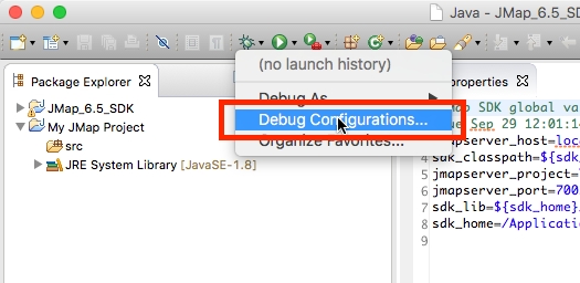 It may be useful to have remote debugging for the JMap Server extensions. Once deployed, these extensions are executed directly in the JMap Server process. It is therefore only possible to debug such extensions remotely. The Java Runtime Environment allows for remote debugging by adding a special parameter in the JMap Server environment. You will then be able to perform a server connection from Eclipse and monitor the execution of your JMap extensions step by step.