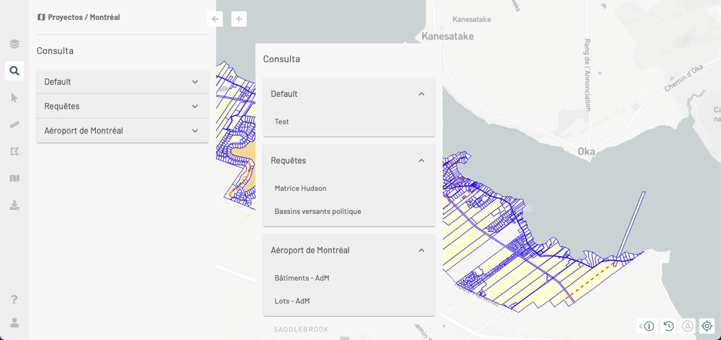 Una consulta selecciona los elementos de la capa cuyos valores de atributos corresponden a los términos indicados en el formulario. Varias herramientas están disponibles para utilizar esos datos.