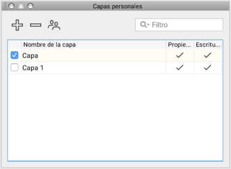 Las capas personales pueden ser compartidas con otros usuarios según diferentes niveles de permisos. Los permisos siguientes están disponibles: