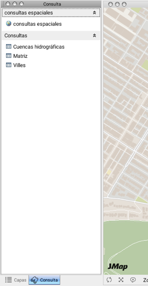 Las herramientas de consulta ![](https://2090543877-files.gitbook.io/~/files/v0/b/gitbook-x-prod.appspot.com/o/spaces%2FKFeRW5Kjzju8B2lufaAE%2Fuploads%2Fgit-blob-b21d4fd9a027f6bb7682df398325e78b4f1f851f%2Ffind.png?alt=media) permiten seleccionar elementos en el mapa según criterios espaciales (consultas espaciales) o descriptivos (consultas por atributos).&#x20;