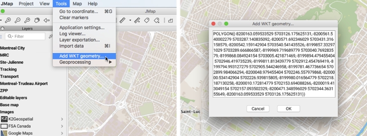 The JMap Pro user can add and edit WKT geometries.